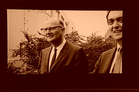 1965年12月29日に撮影スタジオにモノリスの出来栄えを見に行ったA.C.クラーク(左)とS.キューブリック。