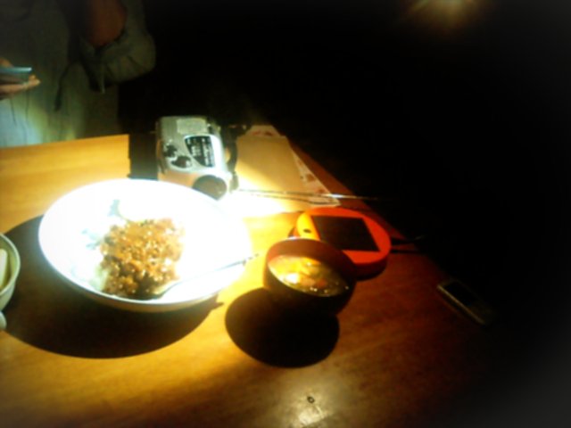 駅は大丈夫だったのに家の周辺は停電で真っ暗。DAで始まったスクールオブロックをラジオで聴きながらキャンプのように晩御飯。