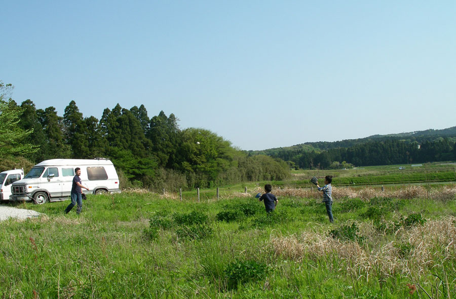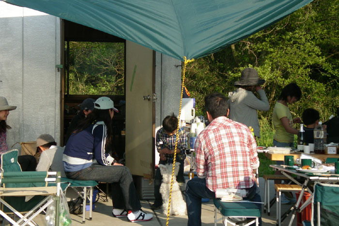 2年位前から水道引いたり、電気通したりしてる様子をブログhttp://shinjitak.exblog.jp/i10/に綴ってて、年に一度の同窓会で会ったときに、今度遊びに(いやいや手伝いに!)行くと宣言していたもののなかなか都合がつかず、今年のGWようやく実現。同じく同級生の現在はカメラマンとして活躍中のKデラ一家(カミさん+コドモ3人+マロンちゃんとドイツ製の大きなワゴンに便乗して行ってきた。