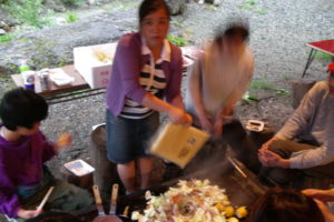 作業のアトは大将(スマッシュ日高社長)やフジロッカーズの若い衆とBBQ。翌週のフジロックでのレッチリの1曲目は何か? とか97年の天神山でのレッチリのステージの話などの楽しい雑談。20代くらいのカップルから「家族でフジロック行けるようになるのが夢です」なんて言われたけど、それってさりげなくプロポーズっぽい(笑)。その後、この2人はどうなっただろう?
